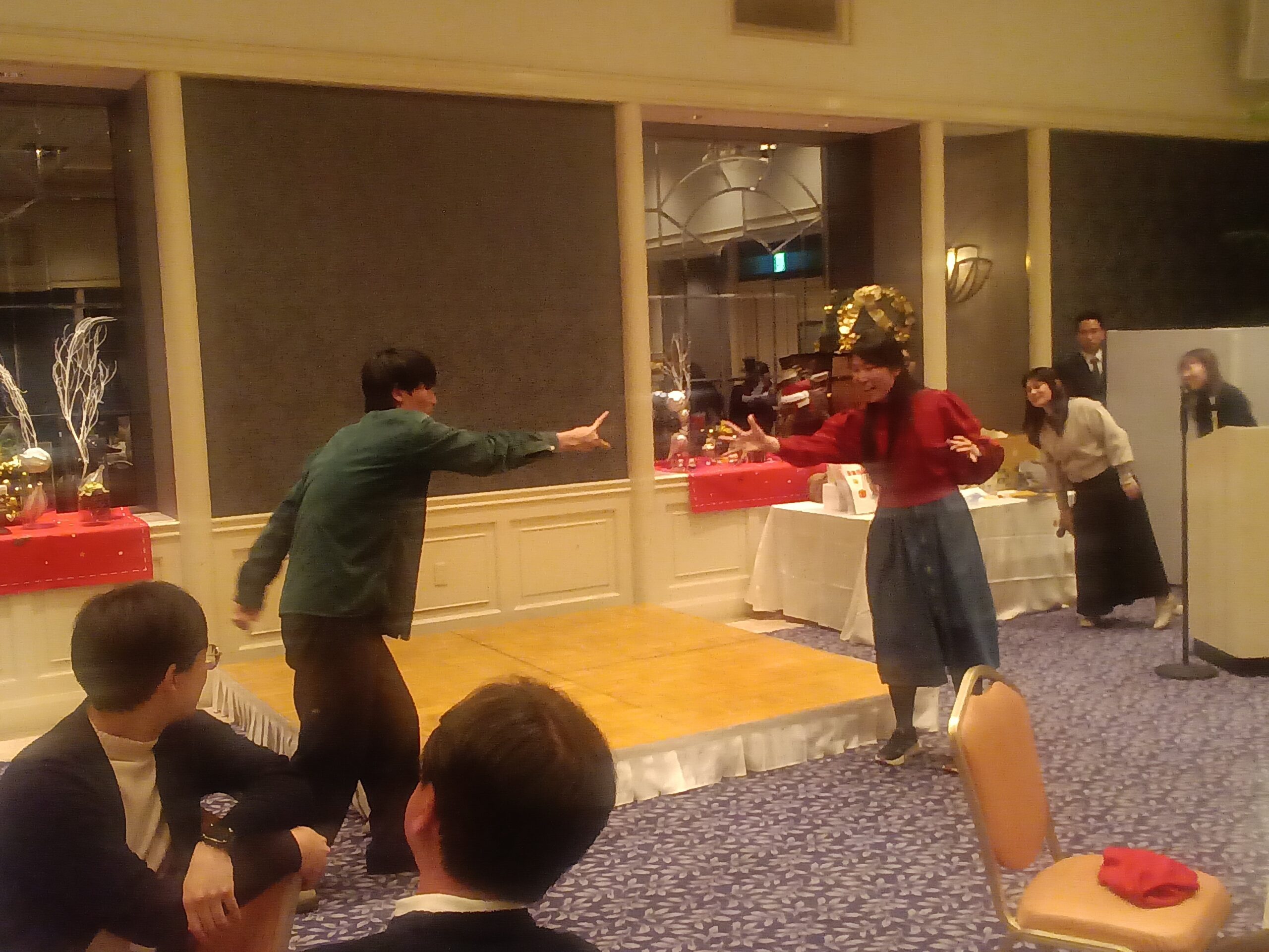 伊勢神宮からホテルに戻り、お楽しみのパーティーを開催!                                 美味しいお料理をいただきながら、                                           豪華景品をかけたチーム対抗のゲーム大会を行い、社員同士の交流を深めました。                                                                   優勝決定戦までもつれ込み、最後はじゃんけんで勝負…!白熱したバトルでした笑
